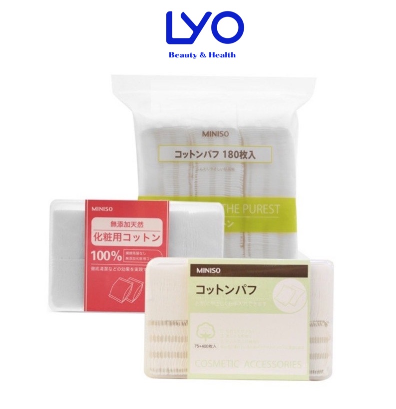 Bông Tẩy Trang Miniso Nhật Bản hiện đã có mặt tại LYO với 4 phân loại : 180 - 475 - 800 và 1000 miếng ( càng nhiều miếng thì lớp bông càng mỏng )