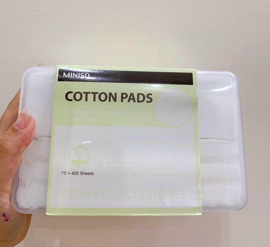 3> Miniso 475 miếng: Trong 475 miếng bông bao gồm 400 miếng 1 lớp chỉ chứa cotton ( phù hợp với việc sử dụng toner và làm lotion mask ) và 75 miếng chứa bông, được ép viền xung quanh thích hợp khi tẩy trang.