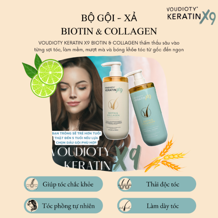Dầu gội và xả tóc Voudioty Keratin x9 500ml