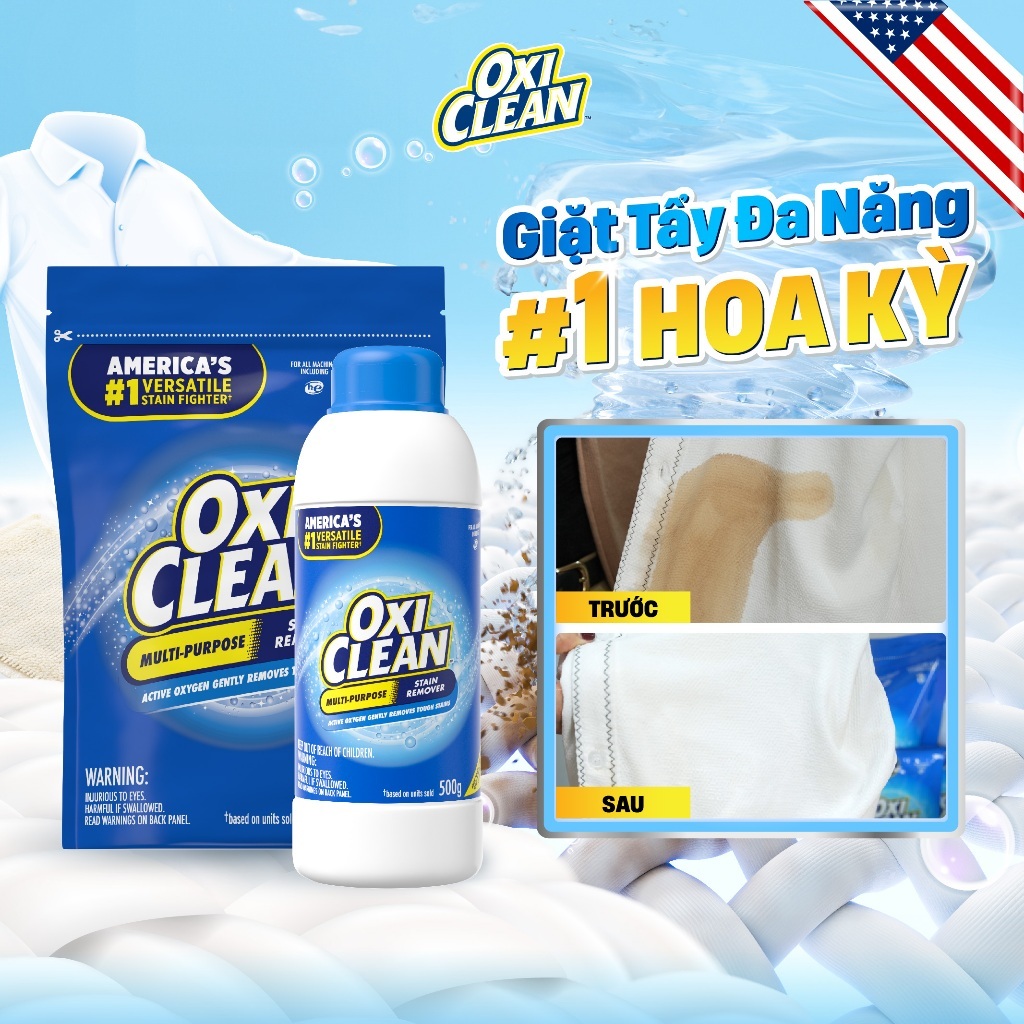 Bột Tẩy Đa Năng Oxiclean Giúp Tẩy Cặn Canxi, Dầu Mỡ, Các Vết Bẩn Cứng Đầu, Không Mùi, An Toàn Với Da Tay 500g/1000g