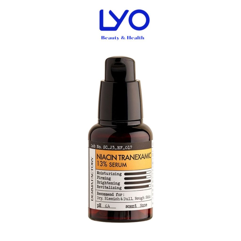 Serum Dưỡng Trắng Da, Mờ Thâm Nám Tàn Nhang Derma Factory Niacin Tranexamic Acid 13% 30ml - Serum làm mờ vết thâm nám có chức năng làm trắng da với hàm lượng cao niacinamide 10% và axit tranexamic 3% hỗ trợ dưỡng da giúp da trắng sáng, mờ thâm nám