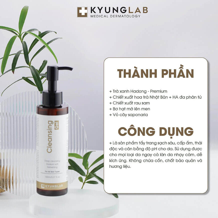 Sữa Rửa Mặt Làm Sạch Sâu Kyung Lab Cleansing Gel là dòng sữa rửa mặt dạng gel với chiết xuất trà xanh hadong Premium ứng dụng công nghệ hấp và sấy truyền thống 9 lần ở nhiệt độ, hoa trà Nhật Bản, HA đa phân tử và các thành phần quý hiếm khác giúp làm sạch sâu bụi bẩn trong từng tế bào một cách nhẹ nhàng, làm dịu da, giảm tình trạng kích ứng và không gây khô da.