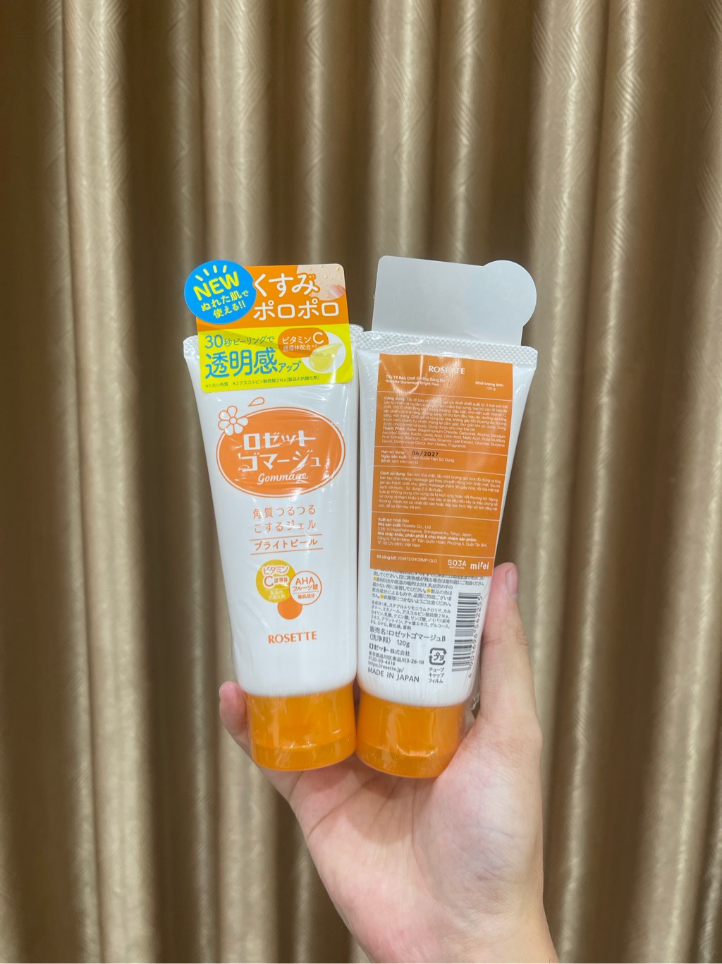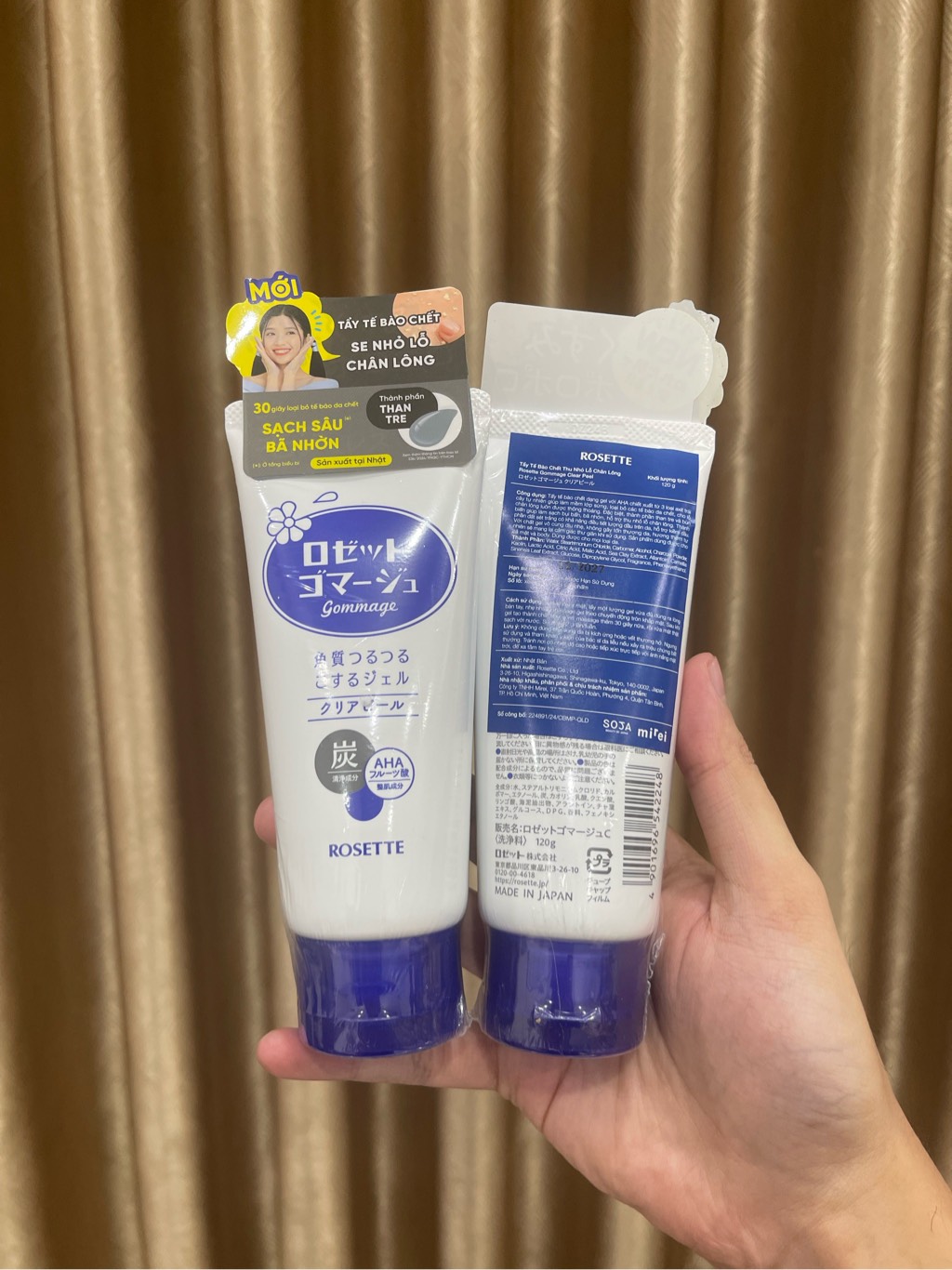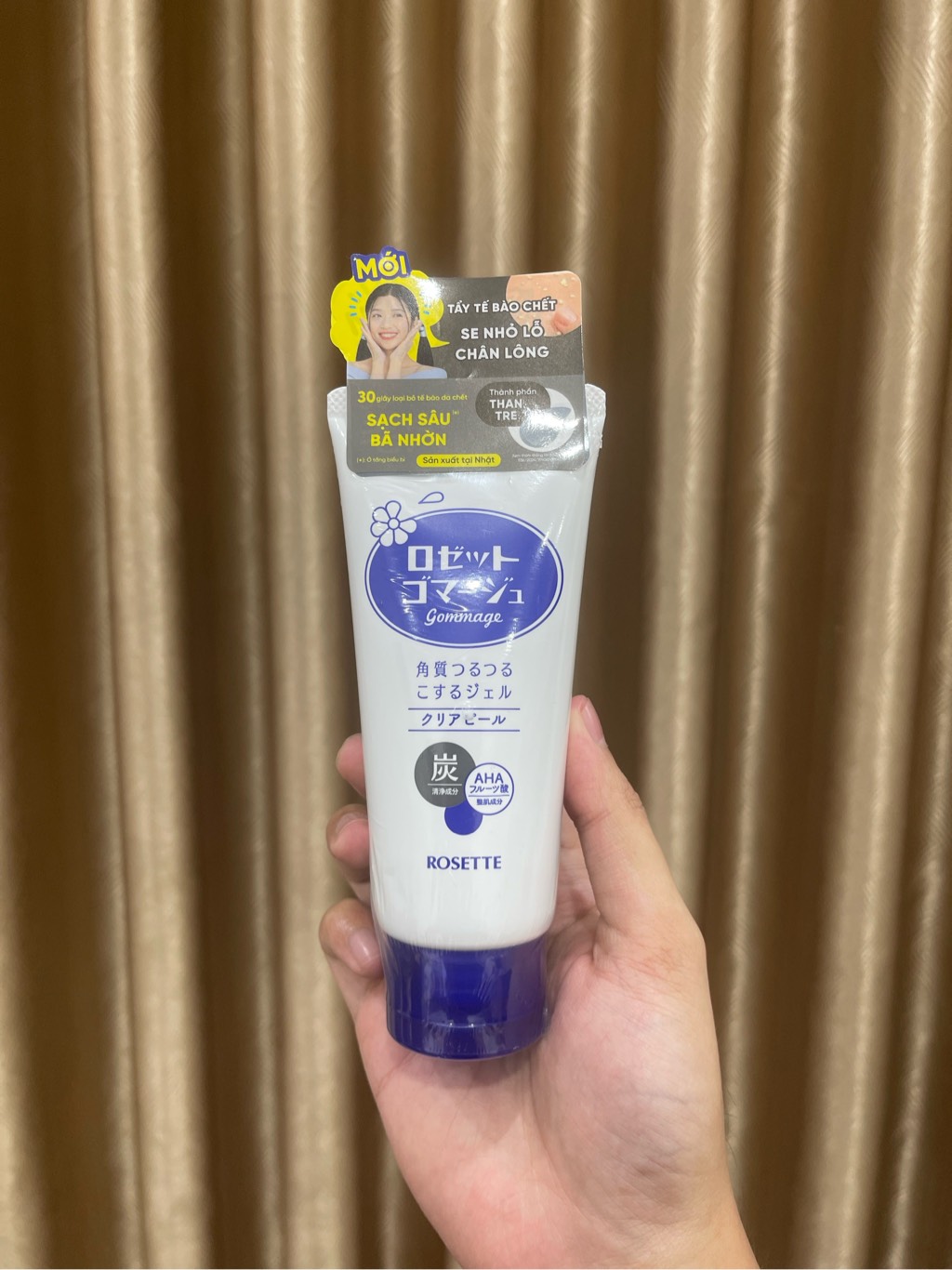 - Gel tẩy tế bào chết rosette giúp lấy đi triệt để bã nhờn, tế bào chết gây tắc nghẽn lỗ chân lông, ngăn chặn hình thành mụn viêm, mụn đầu đen,….và giúp cải thiện tông da sáng lên trông thấy.