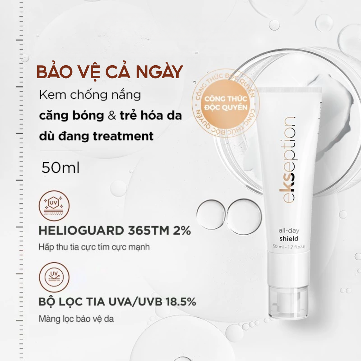 Kem Chống Nắng Ekseption All Day Shield Fluid Kết Hợp Dưỡng Ẩm - Căng Bóng & Trẻ Hoá Da, Phù Hợp Nhiều Loại Da 50ml