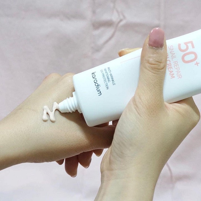 Kem chống nắng Karadium có màu da tự nhiên có thể sử dụng làm kem lót trang điểm hoặc kem nền trang điểm đối với các bạn da không quá nhiều khuyết điểm. Kết cấu nhẹ nhàng, tự nhiên và khi thoa lên da bạn sẽ hoàn toàn không gây cảm giác dính rít.