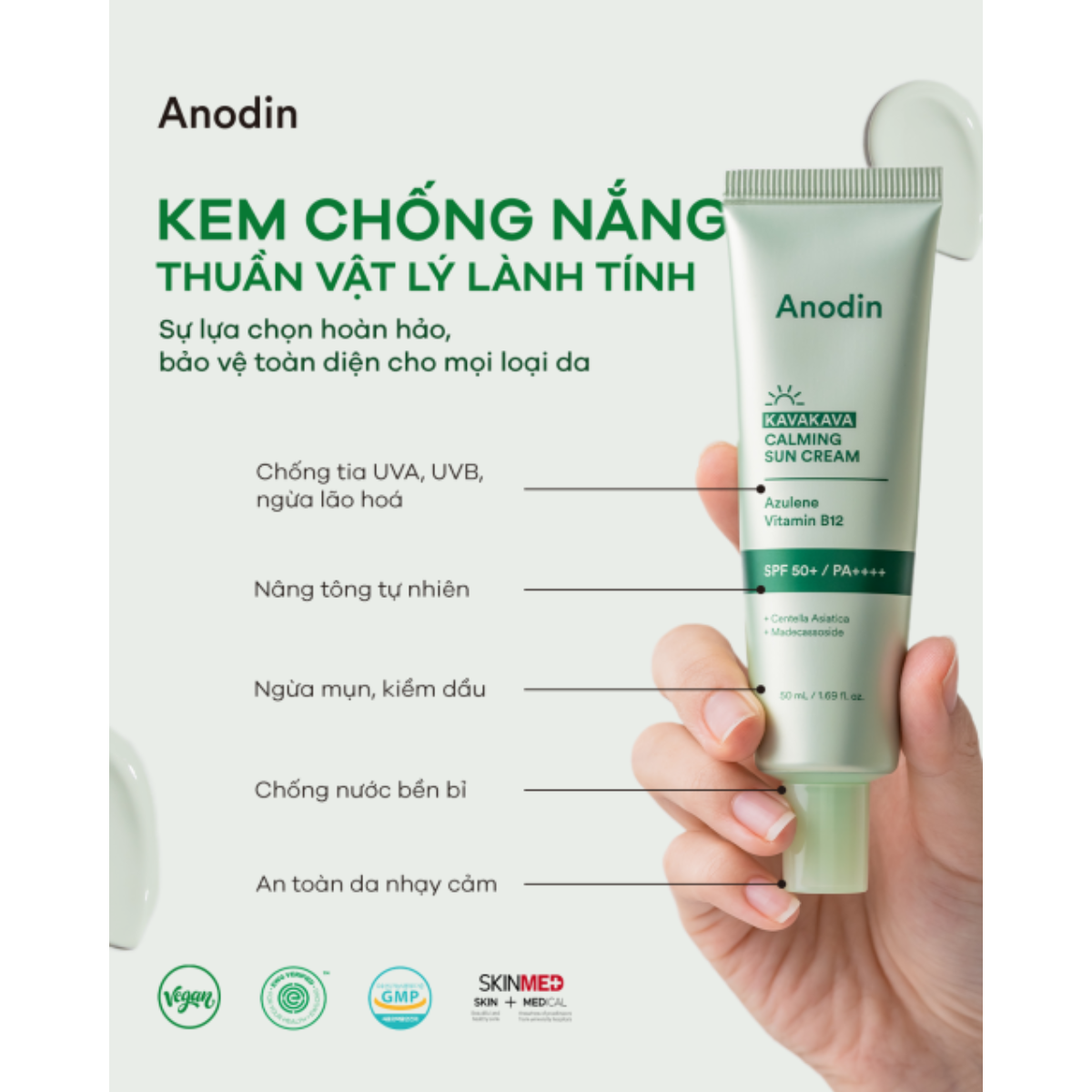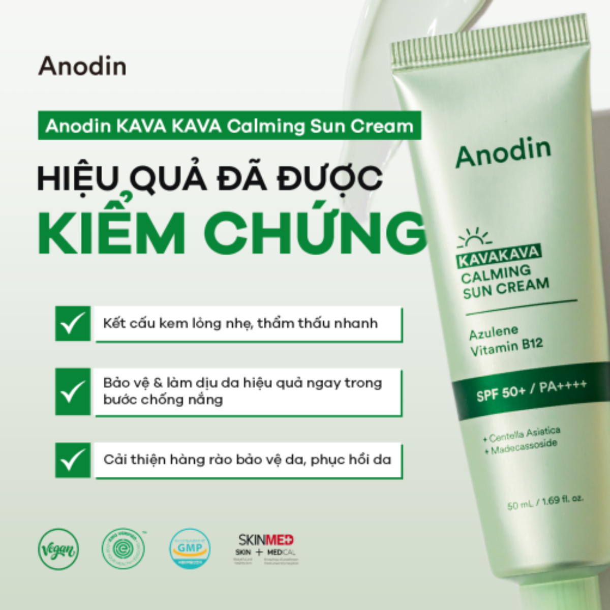 Kem Chống Nắng Nâng Tone Cho Da Dầu, Nhạy Cảm Anodin Kava Kava Calming Sun Cream Hàn Quốc 50ml