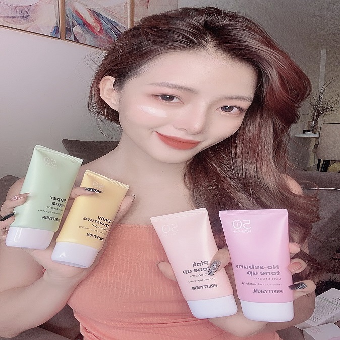 1. Kem Chống Nắng No sebum PrettySkin 70ml: kiềm dầu siêu tốt , lên tông trắng Hồng