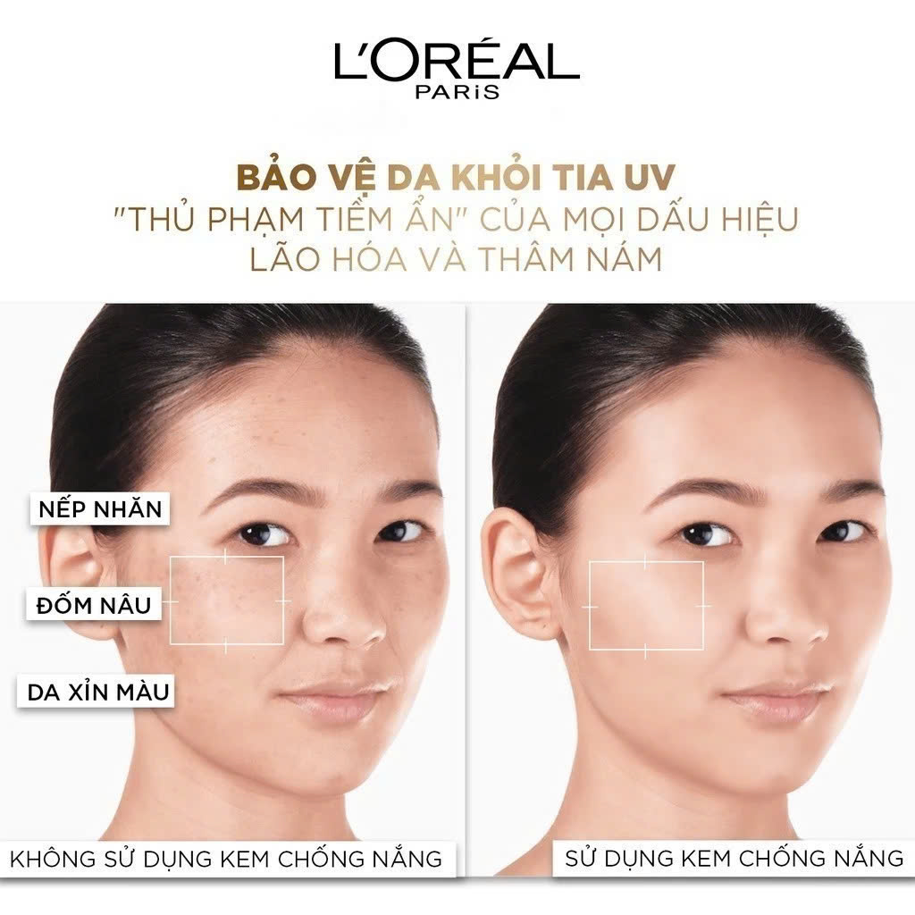 - Công nghệ Netlock độ.c quyền của L'Oreál: tạo lớp màng chắn UV mỏng nhẹ vô hình, giúp bảo vệ da tối đa khỏi tia UV, đặc biệt UVA dài có bước sóng từ 380nm - 400nm xâm nhập vào sâu trong da.