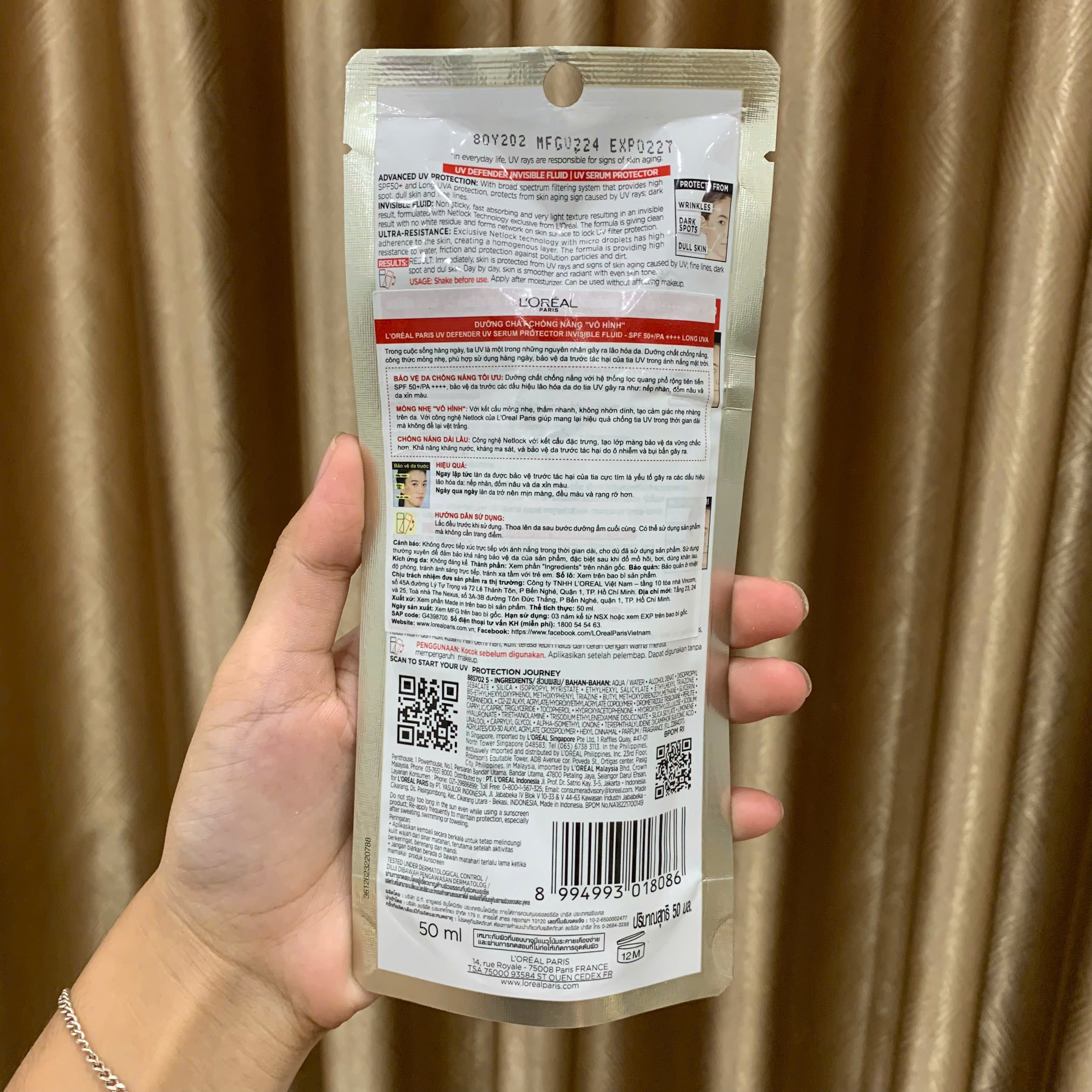 Kem Chống Nắng Thoáng Da, Siêu Mỏng Nhẹ L'Oreal Paris X20 UV Defender Serum Invisible Fluid / Resist Daily Sunscreen SPF50+ PA++++ Loreal 50ml