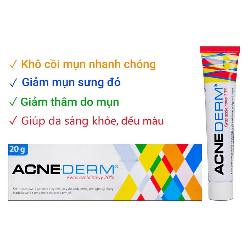 Kem giảm mụn, giảm thâm Acnederm Azelaic Aicd 20% Acne Derm 20g sẽ giúp bạn hoàn thiện vẻ đẹp của bản thân hơn. Hàng triệu khách hàng trên thế giới đã tin dùng, vậy thì bạn còn chần chờ gì nữa phải không nào !