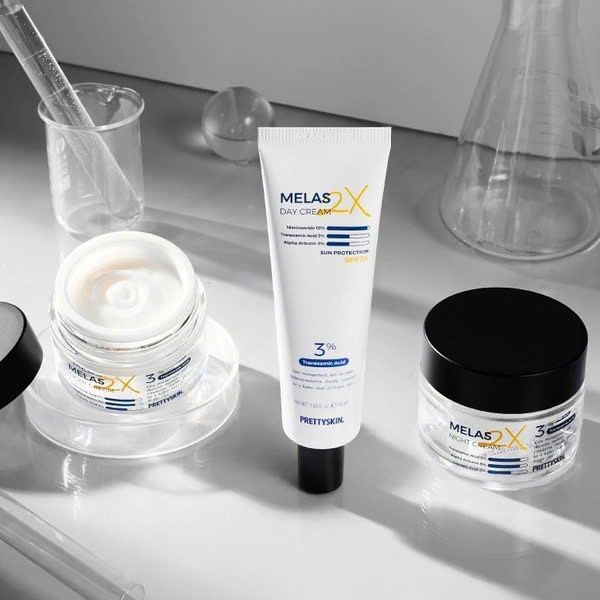 – Sự kết hợp của 3% Tranexamic acid cùng với 3% Alpha arbutin là điểm nhấn ấn tượng có trong bộ đôi kem dưỡng ngày đêm Melas 2X, mang lại hiệu quả làm sáng da và làm mờ các vết thâm nám.