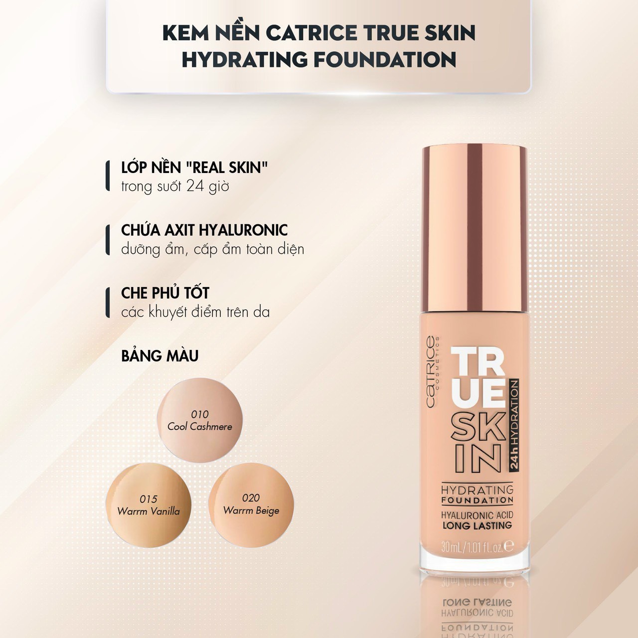 Kem nền Catrice True Skin Hydrating Foundation Làm dịu da & Che mờ khuyết điểm 30ml