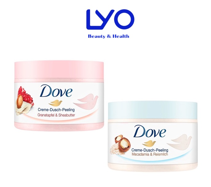1 > Kem tẩy da chết Dove Creme Dusch Peeling Macadamia & Reismilch. Chiết xuất từ hạt Macca và Gạo Sữa giúp bạn có một một làn da mềm mại, da được cung cấp độ ẩm và tạo cảm giác thư giãn mỗi khi thoa lên da. Được tạo nên bởi các hạt nhỏ li ti lột nhẹ tự nhiên, ngọc trai, dầu Jojoba giúp loại bỏ các tết bào da chết với hương thơm vô cùng quyến rũ và tinh tế .