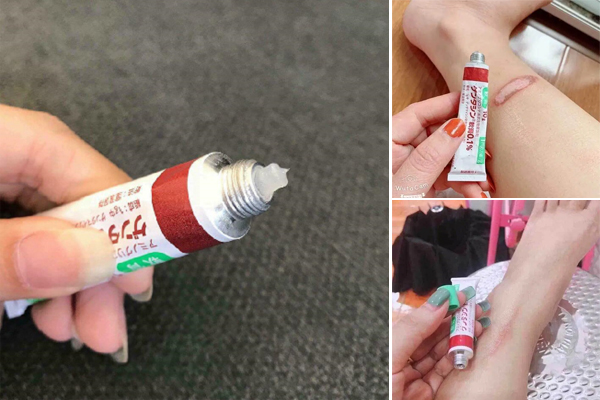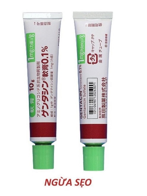 - Sau khi đã vệ sinh sạch sẽ bề mặt sẹo tiếp đến ta thoa một lớp kem trị sẹo gentacin Nhật vừa đủ lên vết thương, massage nhẹ nhàng để kem thẩm thấu tốt vào da của bạn