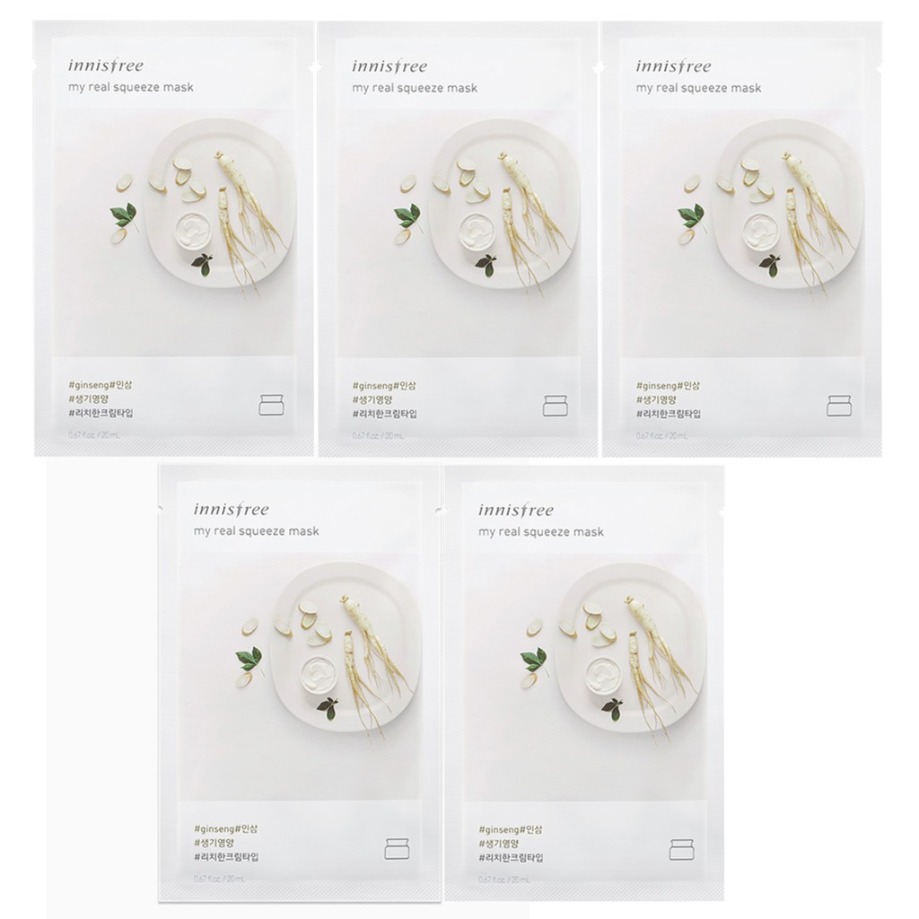 - Mặt Nạ Giấy Nhân Sâm Innisfree My Real Squeeze - Ginseng với sự kết hợp thông minh giữa các tinh chất thiên nhiên quý giá, mặt nạ cung cấp độ ẩm cao, an toàn cho da.