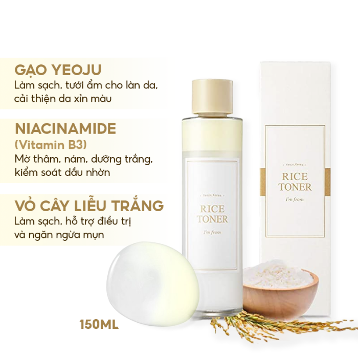 Nước Hoa Hồng I'm From Gạo Làm Sáng Da Rice Toner 30ml - Cấp Ẩm, Dưỡng Sáng, Mờ Thâm