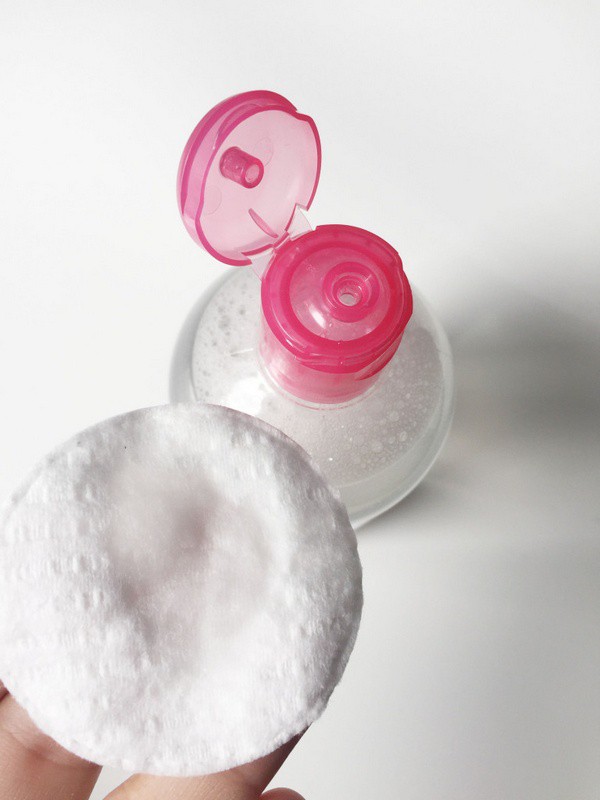 - Lấy bông cotton thấm sản phẩm tẩy trang vùng mắt và môi trước.