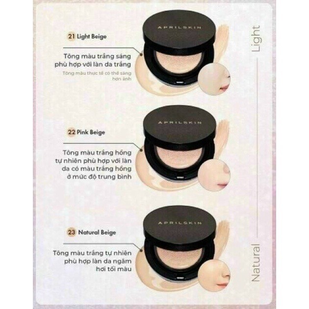 Phấn Nước AprilSkin Magic Snow Cushion / April Skin Ultra Slim Cushion SPF50+ 15g với tone màu tự nhiên, nhiều chất dưỡng ẩm, có khả năng che phủ tốt, sản phẩm thích hợp với các nàng da khô, da nhờn và da thường.