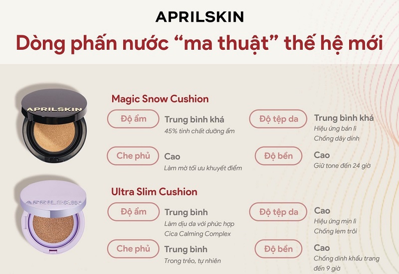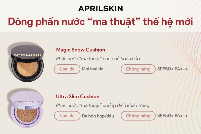** Hiện tại, phấn nước April Skin Snow Cushion (gọi tắt là April Skin) là từ khóa được rất nhiều cô gái tìm kiếm và bàn tán xôn xao. Được mệnh danh là phấn nước “ma thuật”, em April Skin này ghi điểm bởi khả năng che phủ đáng kể. Ngay cả những vết thâm “đậm đà” đến đốm mụn đáng ghét cũng phải biến mất trước “bàn tay che phủ” của loại phấn này