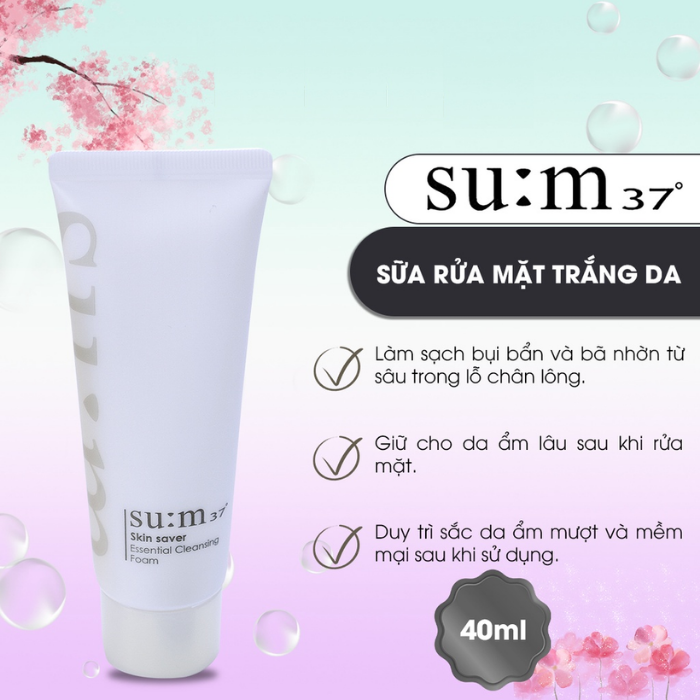 Sữa rửa mặt làm sạch sâu Su:m37 Skin Saver Essential Cleansing Foam 40ml là sản phẩm sữa rửa mặt đến từ thương hiệu mỹ phẩm Su:m37, một thương hiệu mỹ phẩm cao cấp đến từ Hàn Quốc. Sản phẩm được đánh giá cao về khả năng làm sạch sâu, giảm bụi bẩn, bã nhờn và các tạp chất trên da, giúp da sạch thoáng, mịn màng và khỏe mạnh.