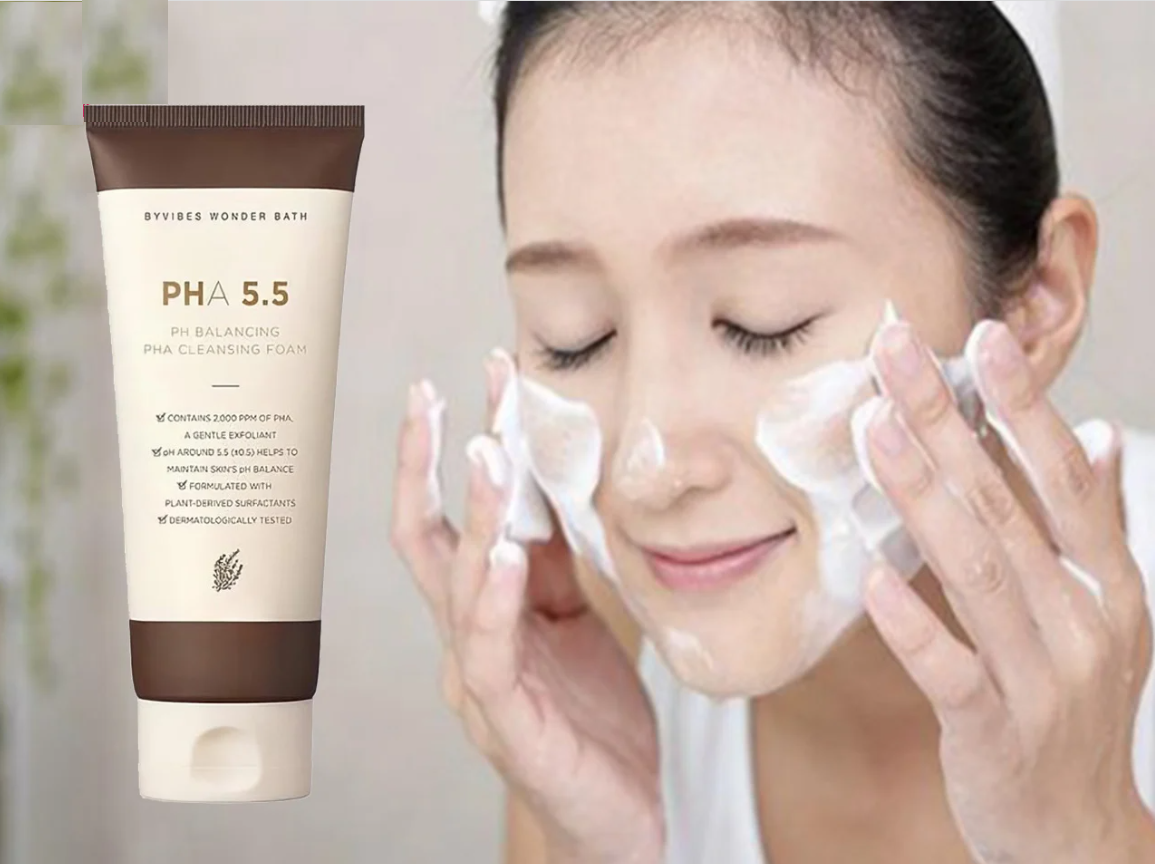 - PHA (Polyhydroxy Acids) – có khả năng tẩy tế bào chết nhẹ nhàng ở bề mặt biểu bì mà không gây kích ứng hay làm tổn thương đến tầng da bên dưới như BHA, AHA; đồng thời vẫn giữ được độ ẩm cho da mềm mịn, không bị khô.