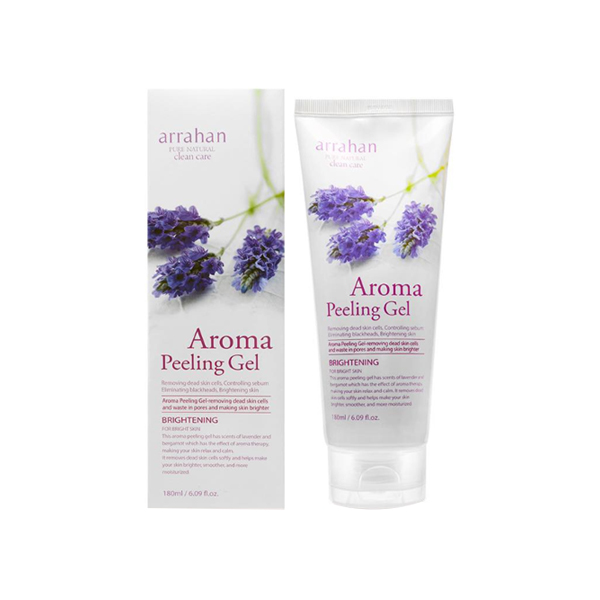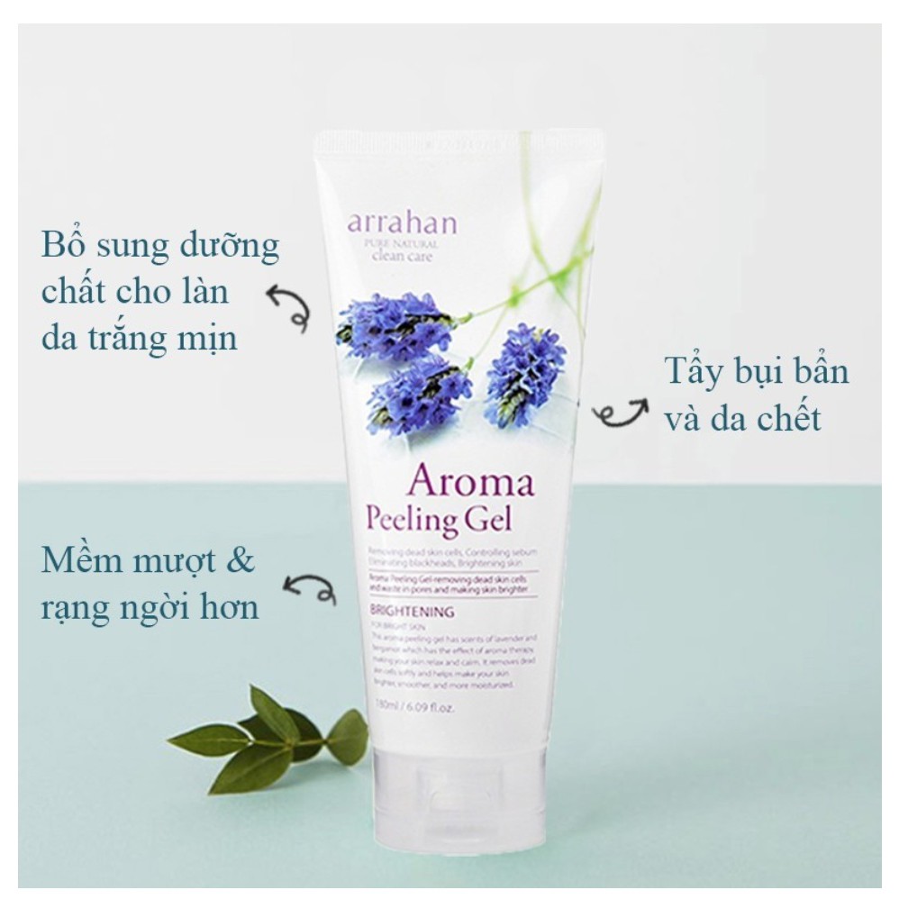 Tẩy da chết Arrahan Aroma Peeling Gel với chiết xuất hoa oải hương và nhiều loại thực vật tự nhiên có tác dụng loại bỏ tế bào chết, bụi bẩn, bã nhờn trên bề mặt da và sâu trong lỗ chân lông, làm sạch mụn cám, mụn đầu đen, kiểm soát dầu.