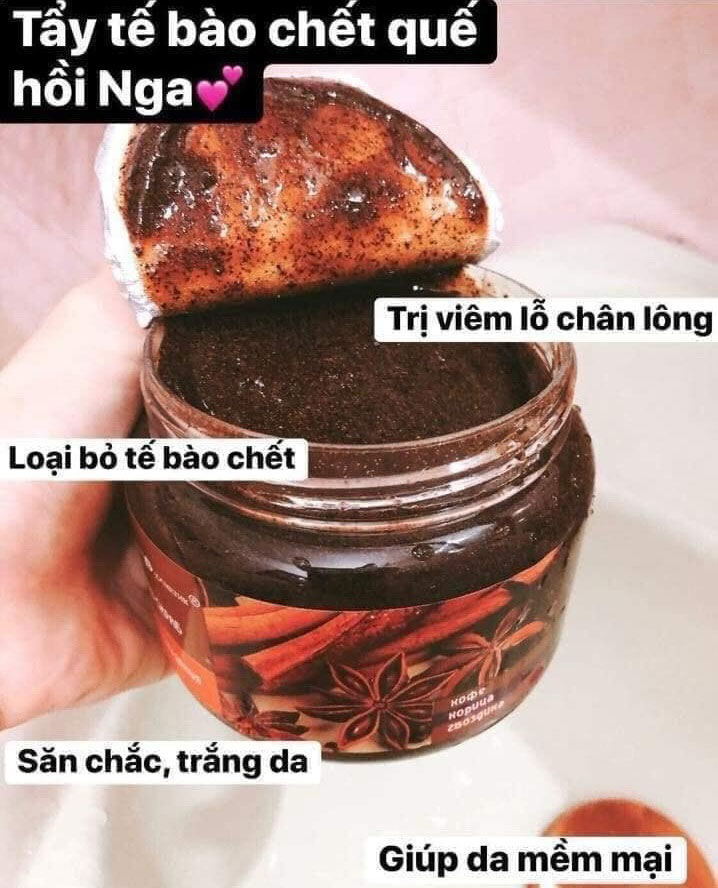 +Tẩy da chết body cà phê quế hồi làm mờ các vùng da thâm sần, thâm sẹo hay thâm rạn hiệu quả