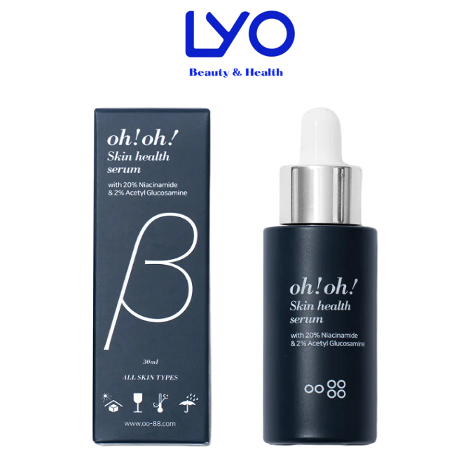 Tinh Chất Dưỡng Trắng Da Giảm Thâm Nám oh!oh! Skin Health Serum With 20% Niacinamide & Acetyl Glucosamine 30ml đến từ thương hiệu mỹ phẩm oh!oh! của Hàn Quốc, chứa nồng độ 20% Niacinamide (vitamin B3) giúp làm sáng da, giảm mụn, hỗ trợ điều tiết dầu thừa, ngừa bít tắc chân lông. Kết hợp cùng 2% N- Acetyl- Glucosamine (NAG) hỗ trợ cải thiện đốm sắc tố, giúp da sáng hơn, đều màu hơn, ngoài ra còn có công dụng làm giảm mụn. Serum thấm nhanh, không nhờn dính như các sản phẩm serum Niacinamide khác trên thị trường, lý tưởng dành cho làn da dầu mụn.