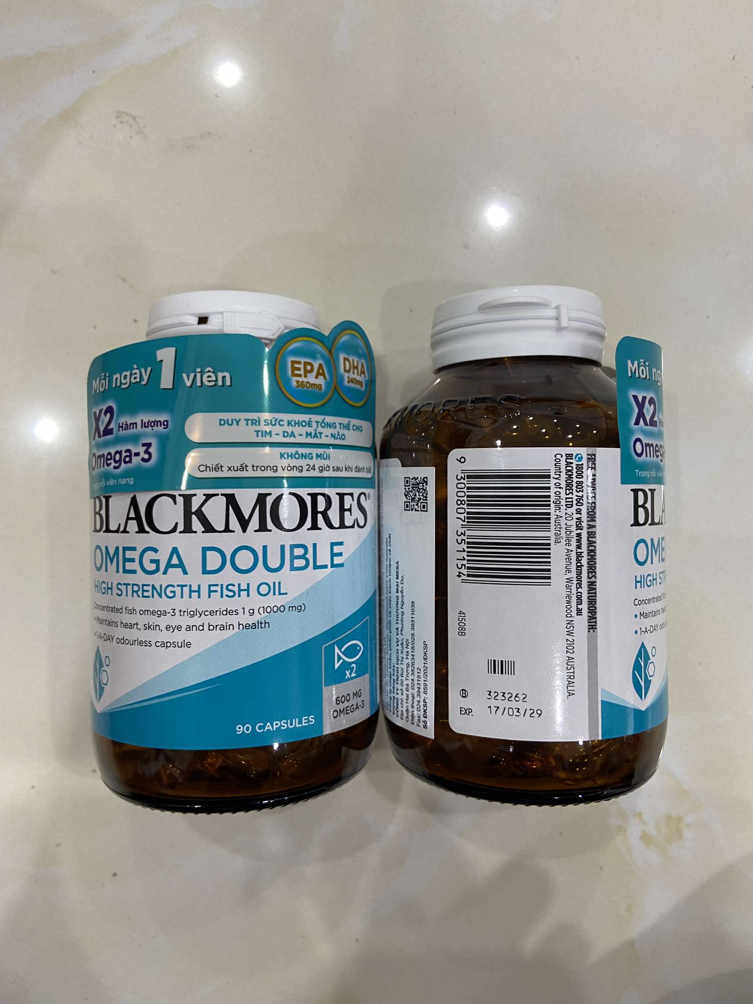 Viên Uống Dầu Cá Bổ Sung Omega Hỗ Trợ Cho Tim, Mắt và Da Blackmores Double Omega High Strength Lọ 90 Viên
