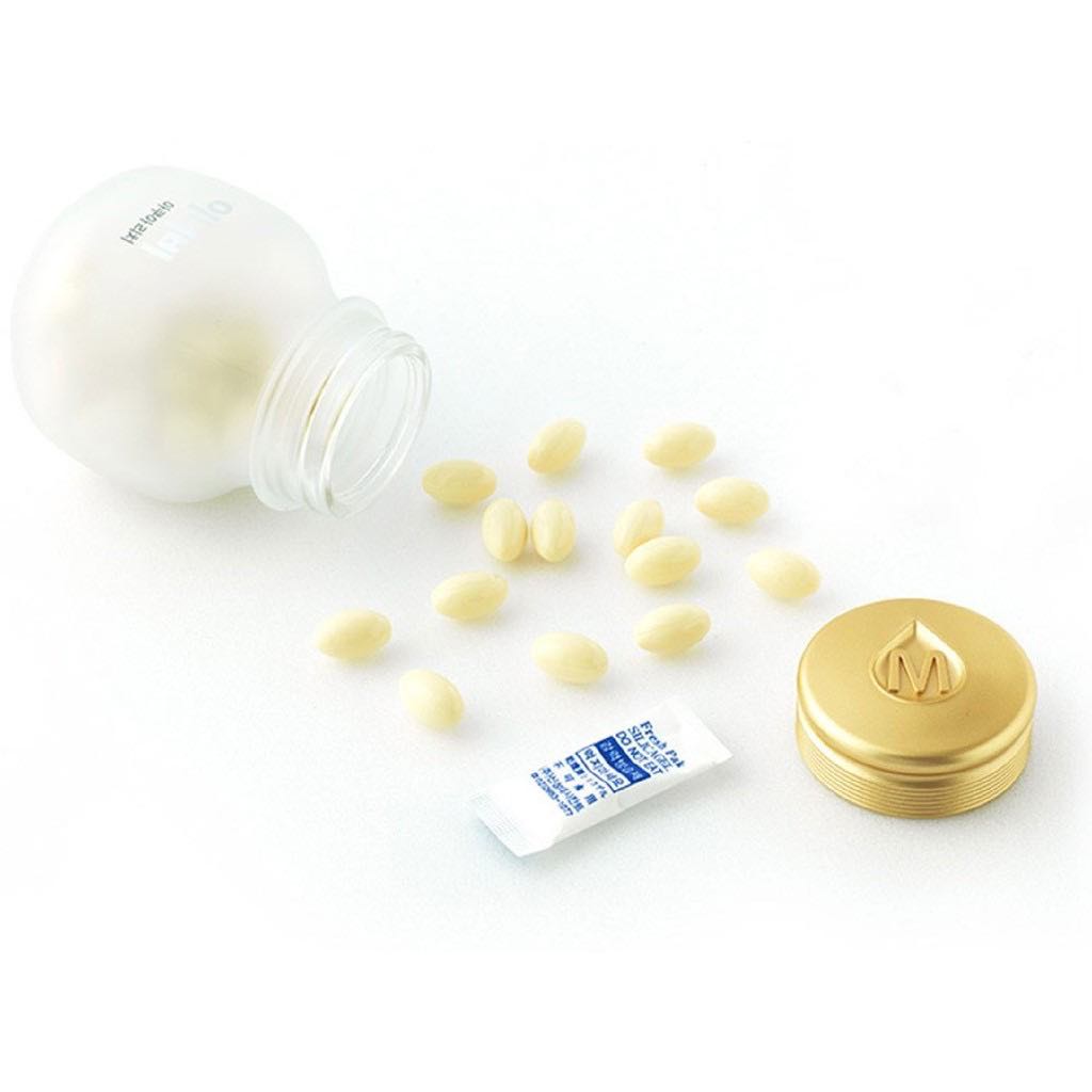 • Phụ liệu viên: Dầu hạt nho, Collagen cá, Chất làm bóng (sáp ong) Chất nhũ hóa (Lecithin), Elastins thủy phân [Elastins thủy phân (da cá), chất điều chỉnh độ Axit (Axit Citric), hương nhân tạo], đạm sữa cô đặc.